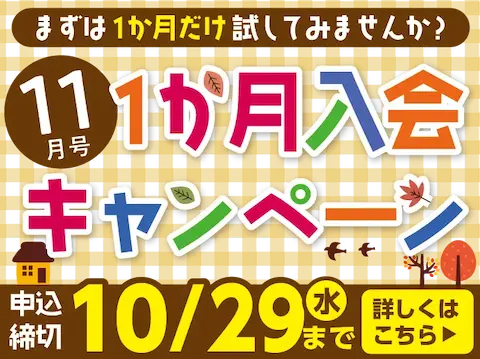 現在ポピーでは、通常2か月以上受講が必要なところ、「11月号」1か月分だけ入会OKキャンペーン施中!