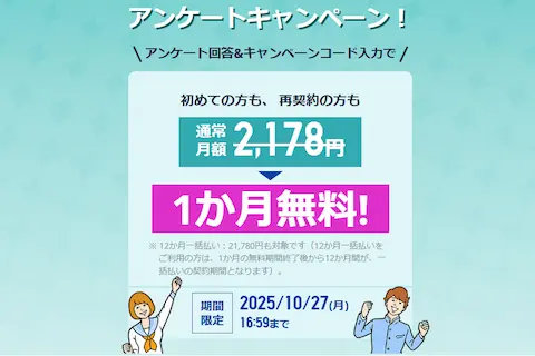 今なら、アンケート回答&キャンペーンコード入力で1か月無料で利用できます!