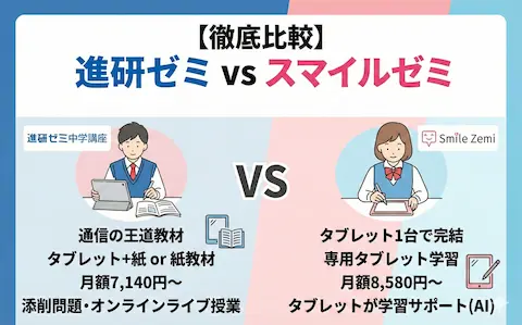 【中学生向け】進研ゼミとスマイルゼミの違いを徹底比較!