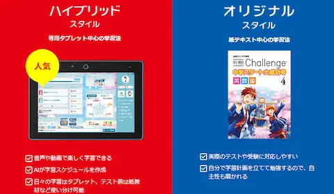 進研ゼミは、タブレット中心のコースと、テキストのみのコースに分かれます。
